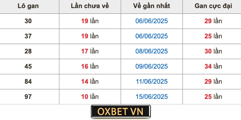Cập nhật lô gan mới nhất từ lô đề OXBET